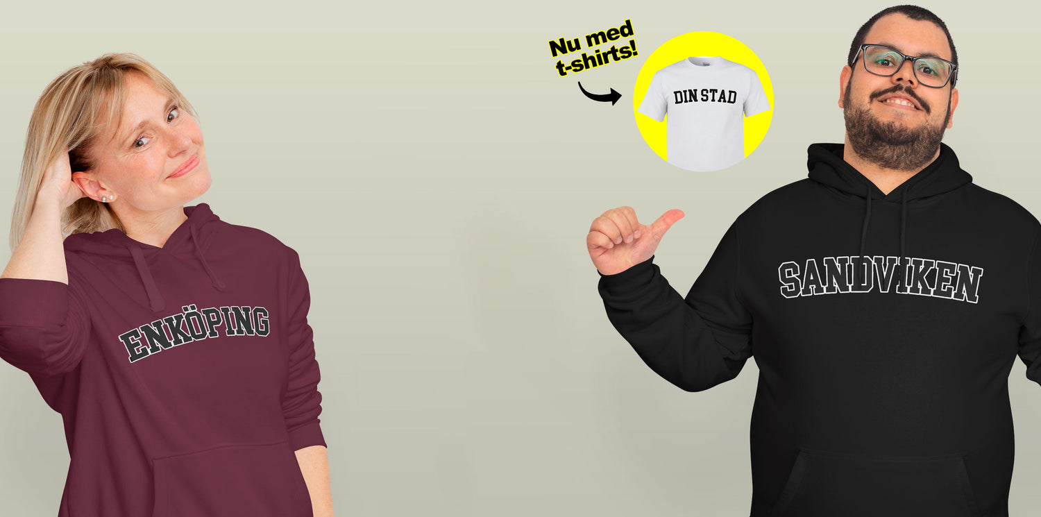 Tryck din stad eller ort på en egen tröja och bär den med stolthet.